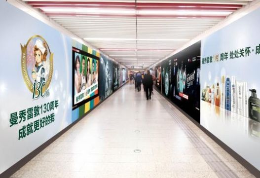 換乘通道雙側(cè)墻貼+130寸酷炫大屏1塊+32寸電子屏12塊