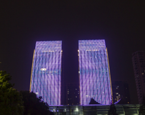 溫州工會大廈樓體媒體廣告,溫州工會大廈led燈光秀廣告,萬事成傳媒