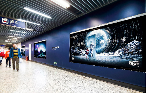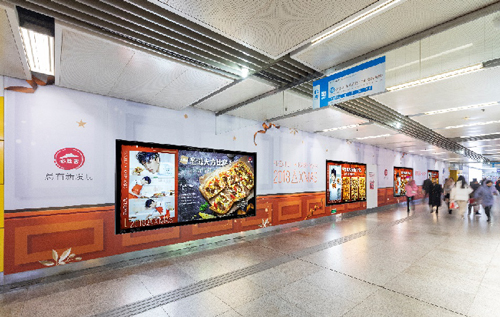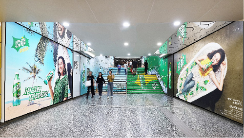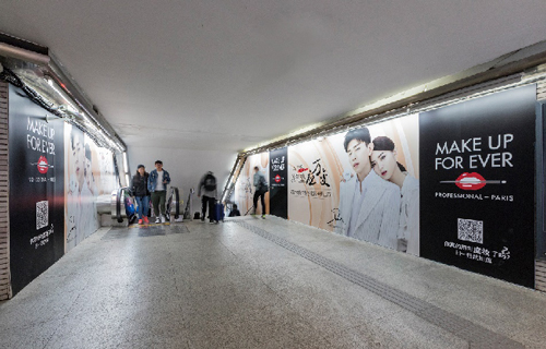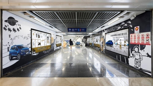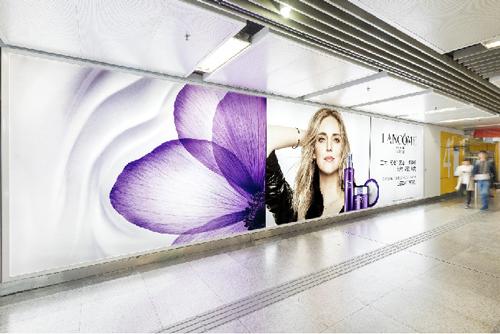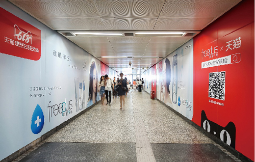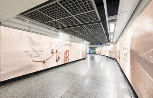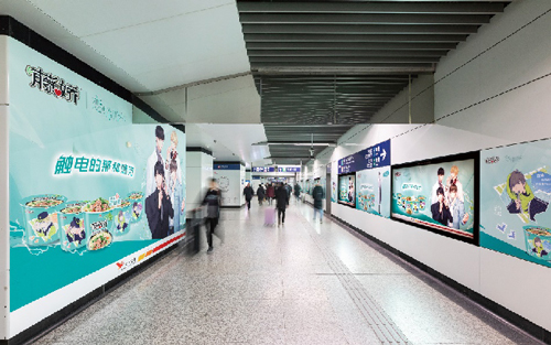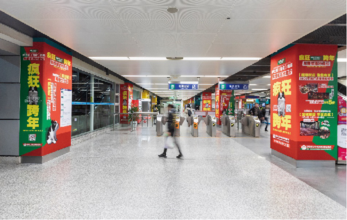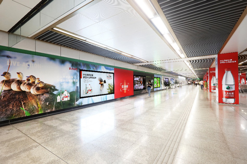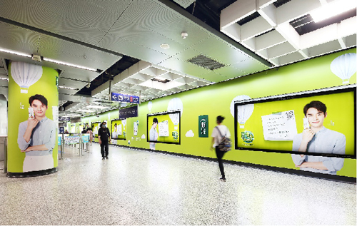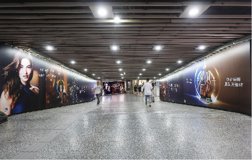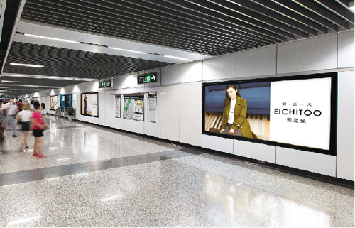 | 創意媒體-南京地鐵新街口站8號品牌通道廣告 線路:1、2號線 組合形式:73.34㎡ 墻貼 媒體費(元/52周):600,000 制作方式:UV寫真燈布 制作費(元/次):22,002 |