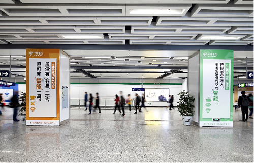 | 創意媒體-南京地鐵中國藥科大學站社區站廣告 線路:1號線 組合形式 :柱貼11面+梯側貼4組+玻璃貼42塊 媒體費(元/4周):180,000 制作方式:寫真噴繪 制作費(元/次):64,809 |