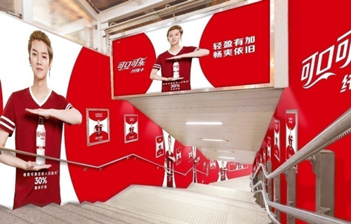 | 創意媒體-南京地鐵新街口站20號品牌通道廣告 線路:1、2號線 組合形式:100㎡頂天立地墻貼 媒體費(元/52周):350,000 制作方式:寫真噴繪 制作費(元/次):30,000 |