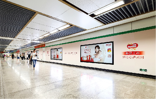 | 創意媒體-南京地鐵大行宮站2號線換乘站廳社區站廣告 線路:2號線 組合形式 :動感長廊(6組12塊雙聯65寸LCD+127.41㎡墻貼)+燈箱長廊(3塊12封燈箱+47.7㎡頂天立地墻貼)+柱貼(不少于50面) 媒體費(元/4周):1,080,000 制作方式:UV寫真燈片+寫真噴繪+電子動畫 制作費(元/次):89,341(墻貼+柱貼+燈片) |