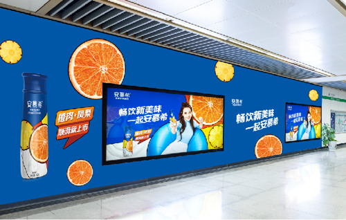 | 創意媒體-南京地鐵安德門站1、10號線換乘品牌通道廣告 線路:1、10號線 組合形式:換乘通道:雙側103㎡墻貼? 媒體費(元/52周):680,000 制作方式:寫真噴繪 制作費(元/次):30,900 |
