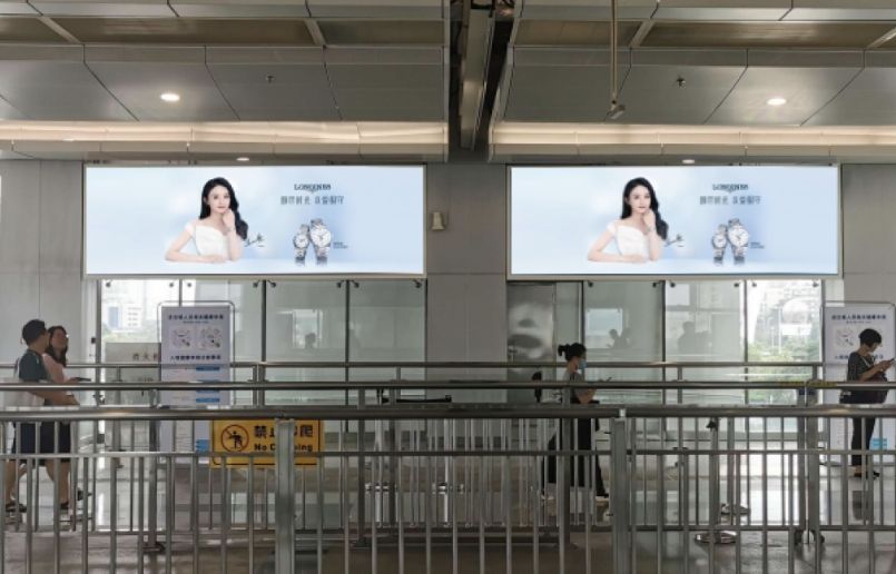位置佳,位于出境扶梯正上方覆蓋口岸出境旅客。出境必經,與地鐵接駁,與旅客出境視線正對且與旅客距離近,有很好的視覺沖擊。