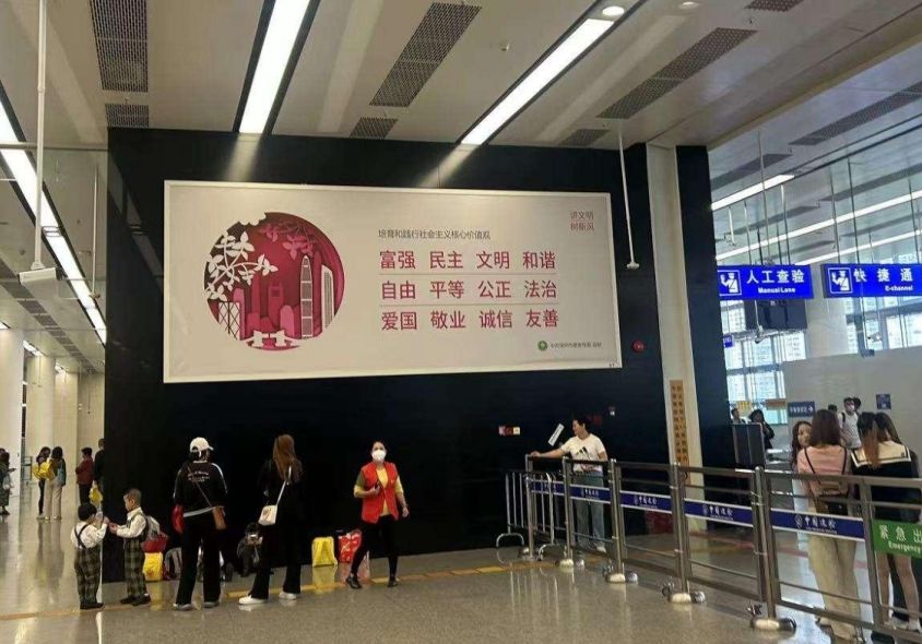 禁區內排隊出入境的通道上,深港跨境口岸媒體,重要提示,吸引消費者蘭注