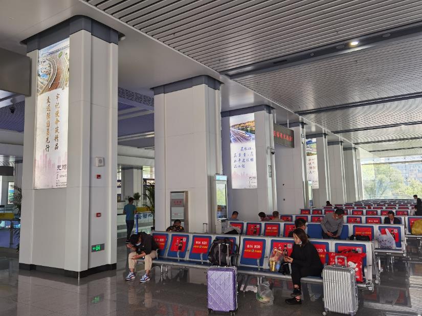 媒體位置:候車(chē)廳一層進(jìn)門(mén)立柱