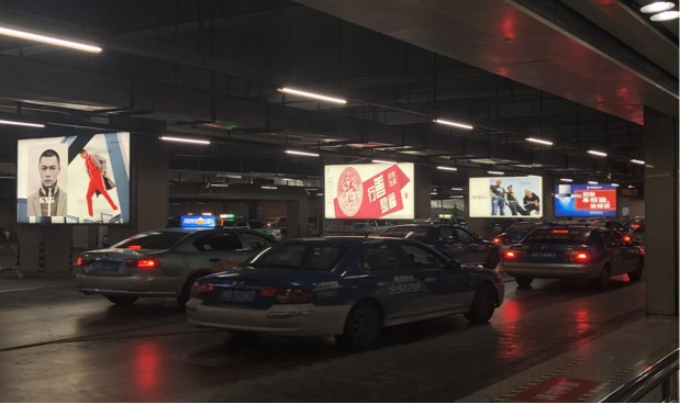 寧波高鐵站燈箱廣告-通往停車場區域墻體燈箱廣告