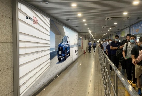 北京南站到達層地鐵換乘區域墻面燈箱廣告 · 4塊