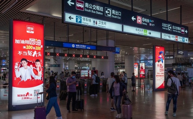 北京南站出發層南北進站口上方看板廣告· 2塊