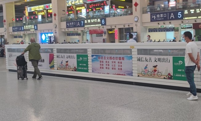漢口站候車大廳東側檢票閘機口燈箱廣告
