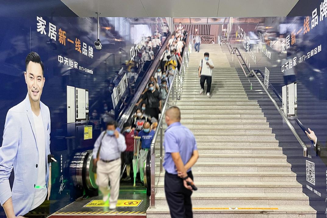 高鐵外車身彩貼廣告覆蓋高鐵站臺(tái)的候車、下車人群,