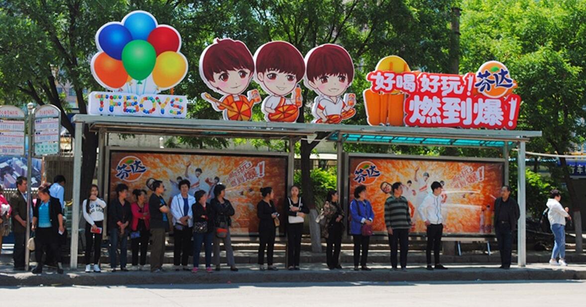 | 太原公交站牌廣告 為突出產(chǎn)品特色,增加廣告記憶度,借助創(chuàng)意特型候車亭來吸引受眾,既增加了傳統(tǒng)候車亭媒體發(fā)布的趣味性,同時(shí)詮釋了芬達(dá)“好喝,好玩!燃到爆!”品牌宣傳主題,成為街頭巷議的重要話題。 |