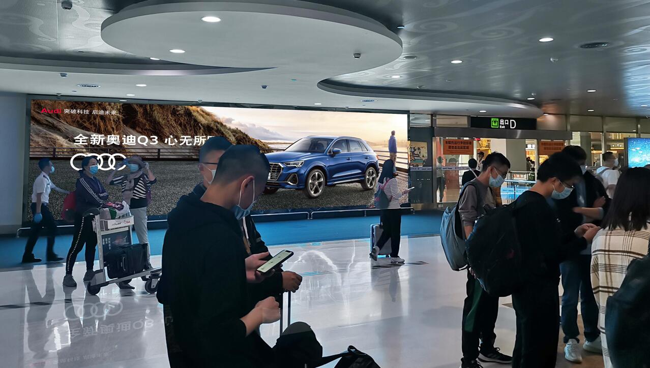 緊鄰到達出口,正向攔截,動態畫面傳遞完美視覺效果。100%覆蓋T2國內到達旅客