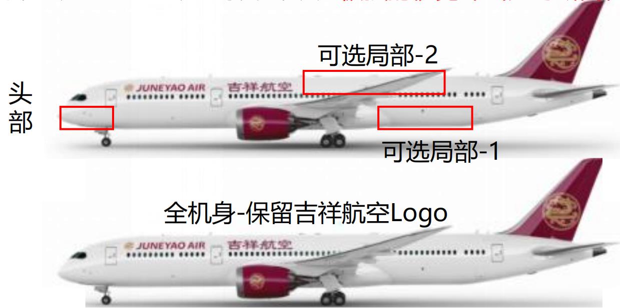 飛機噴涂廣告:把企業的LOGO、形象圖案以及廣告語噴涂在吉祥航空班機的飛機頭部或機身。
