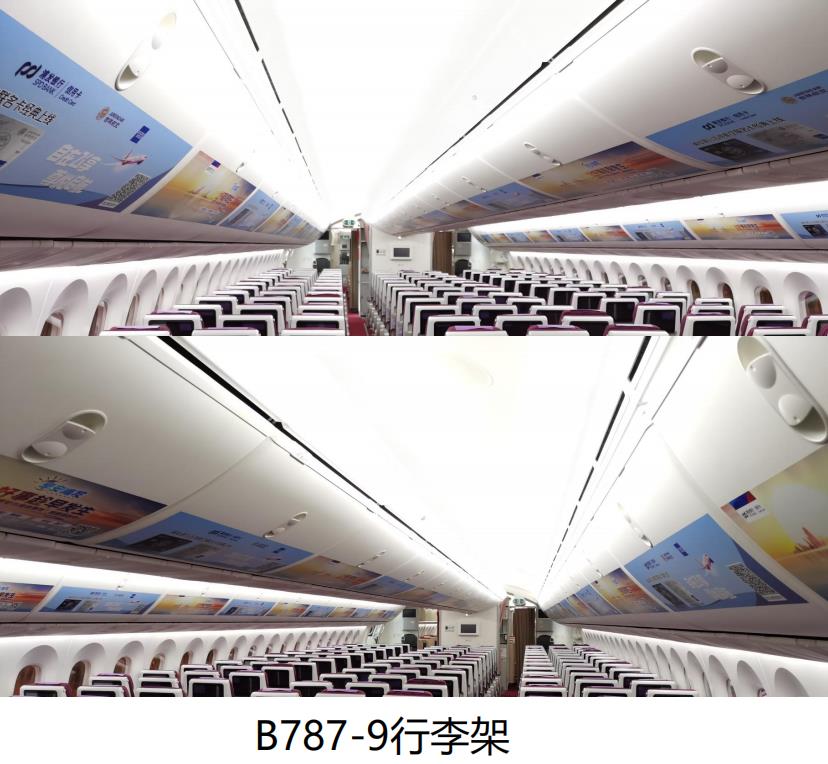 行李架廣告是指位于旅客上方的存放手提行李架外觀,將廣告客戶的LOGO、形象圖案和(或)廣告語張貼在吉祥航空機內的行李架(局部鋪)上,行李架廣告是旅客進入機艙首先接觸到的廣告內容。