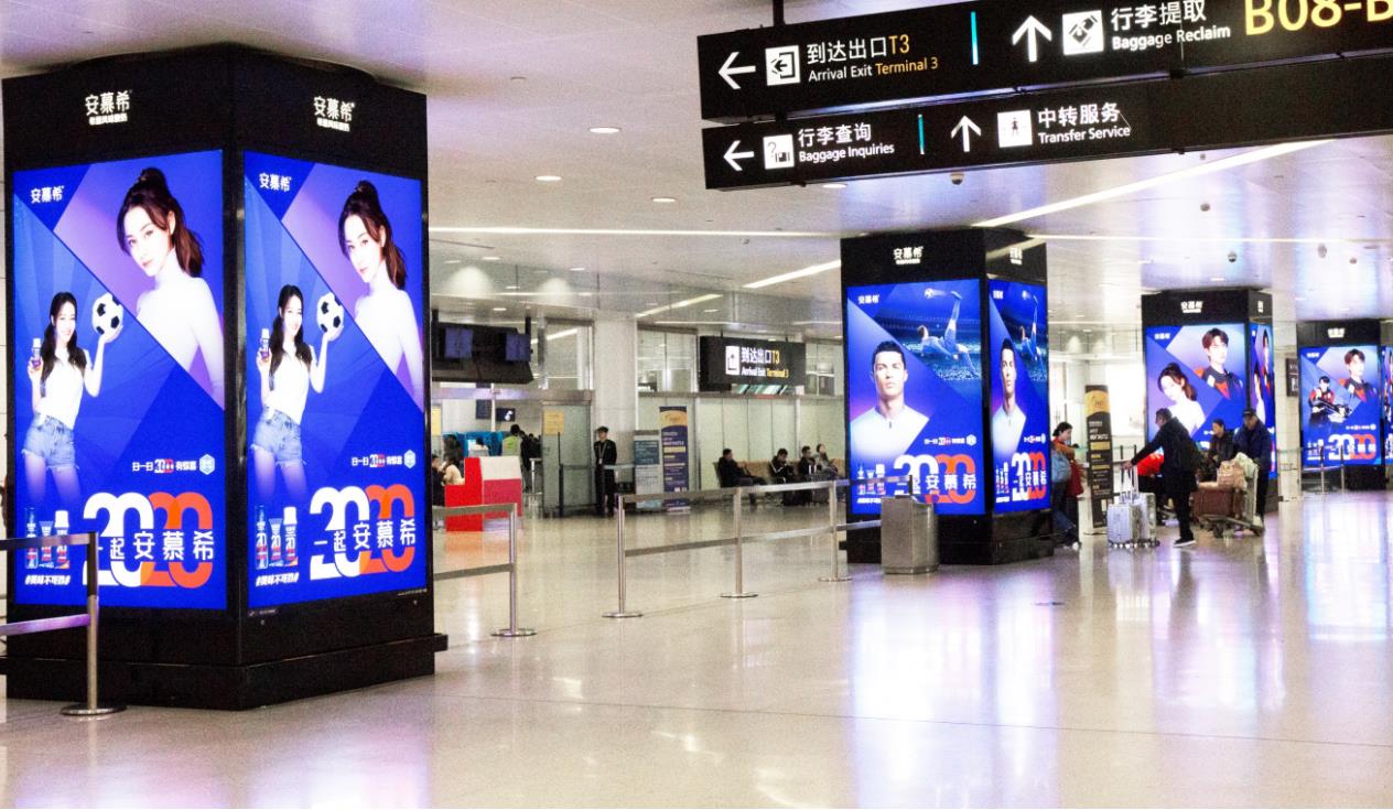 杭州機場包柱燈箱廣告-T3國內到達夾層包柱燈箱廣告