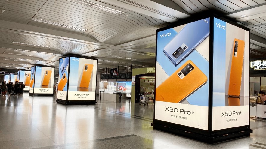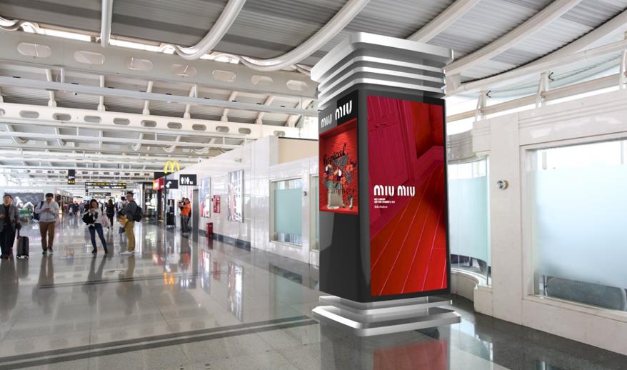 杭州機場包柱燈箱廣告-T1、T2及T3出發大門口右側包柱燈箱廣告