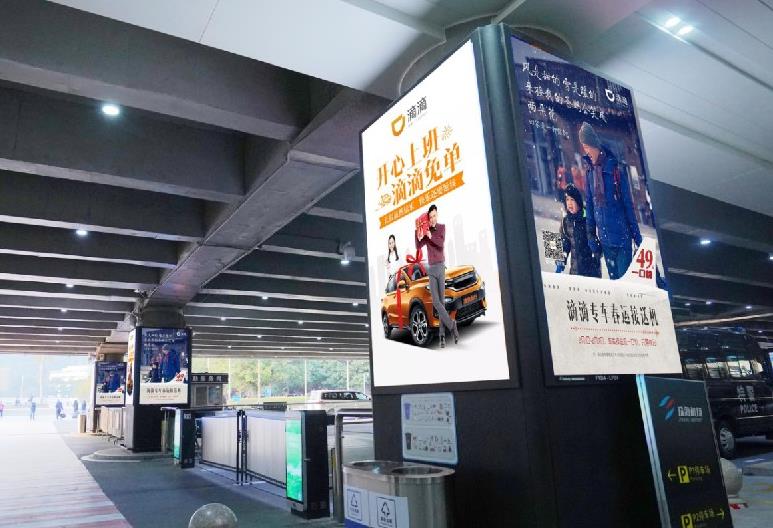 珠海金灣機場廣告-一層到達迎賓廳戶外 | 包柱燈箱廣告