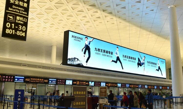 國內(nèi)安檢口巨型屏幕,于機場內(nèi)最具價值的國內(nèi)安檢口正上方