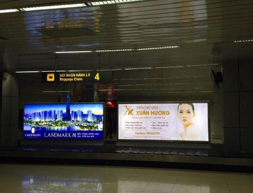 位置:越南峴港國際機場海關檢查口1樓LED廣告屏正面出入境區