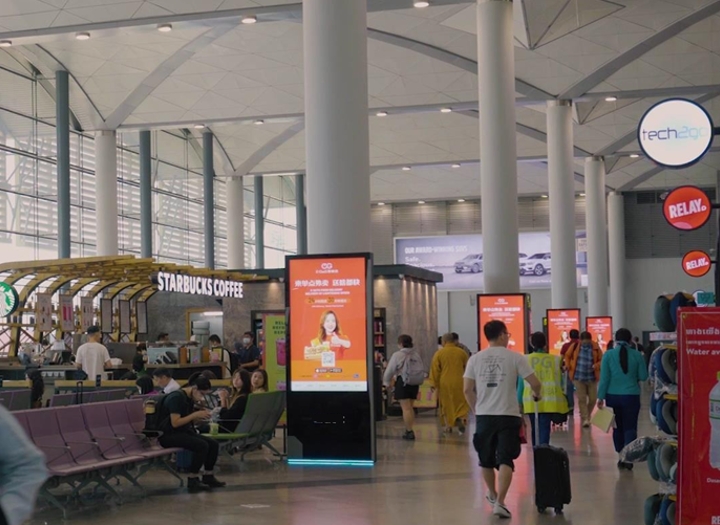 100% 從金邊國際機(jī)場出發(fā)的乘客都可以看到的lcd廣告,它可以以多種語言運行訊息傳遞,并有機(jī)會全天更改內(nèi)容以針對不同的受眾。