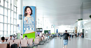 南京機場3f國內出發指廊雙面圖騰燈箱廣告