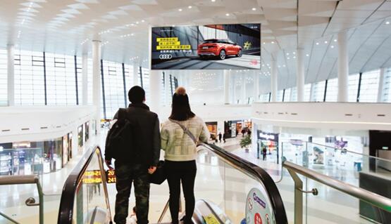 | 媒體位置:四層出發(fā)辦票大廳安檢通廊上方燈箱廣告 媒體形式:橫版燈箱 數(shù)量(面):3 媒體尺寸(W*H)m:14.82*3.32m/面(面積:49.2m2/面) 媒體價格:600萬/組 位于四層出發(fā)辦票大廳安檢通廊上方,旅客必經(jīng)之路 |