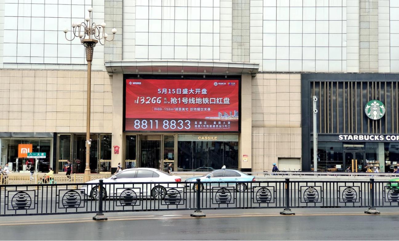 該戶外LED屏幕地處南昌城東商圈最核心十字路口,比鄰青山湖,在南昌主城區重要交通要道——北京路上,同時也是地鐵一號線謝家村站出入口;
