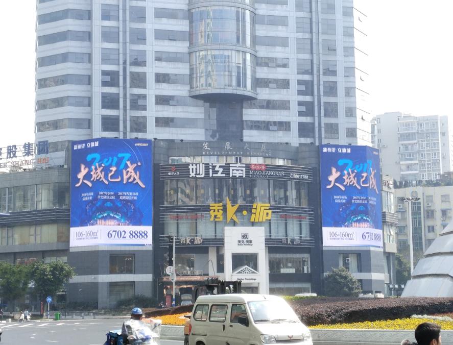媒體位置:府東路與新城大道交匯處的發(fā)展大廈外墻面