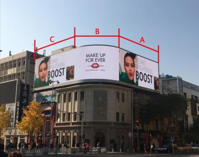 媒體規(guī)格:17.02米(寬) x 10.75米(高)=183平方米;播放時間:9:00 - 22:00; 15秒,60次/天