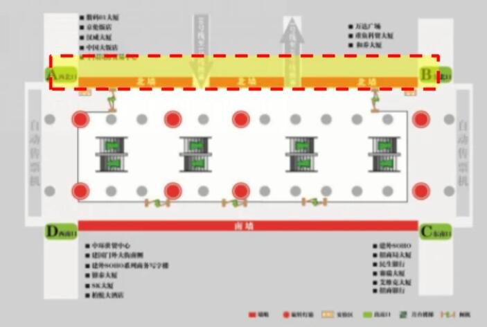 4、站廳西南側D出口:北京銀泰中心、中環世貿中心、安邦金融中心、北京國際財源中心、IFC大廈、建外SOHO西區、SK大廈、柏悅酒店