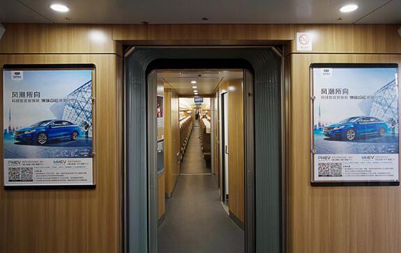 高鐵列車從外到內,對旅客進行全方位的廣告宣傳,大大加深旅客的品牌印象;的投放,將極大的提升品牌知名度,線下傳播結合線上宣傳,將極大的提升品牌影響力。高鐵品牌列車廣告