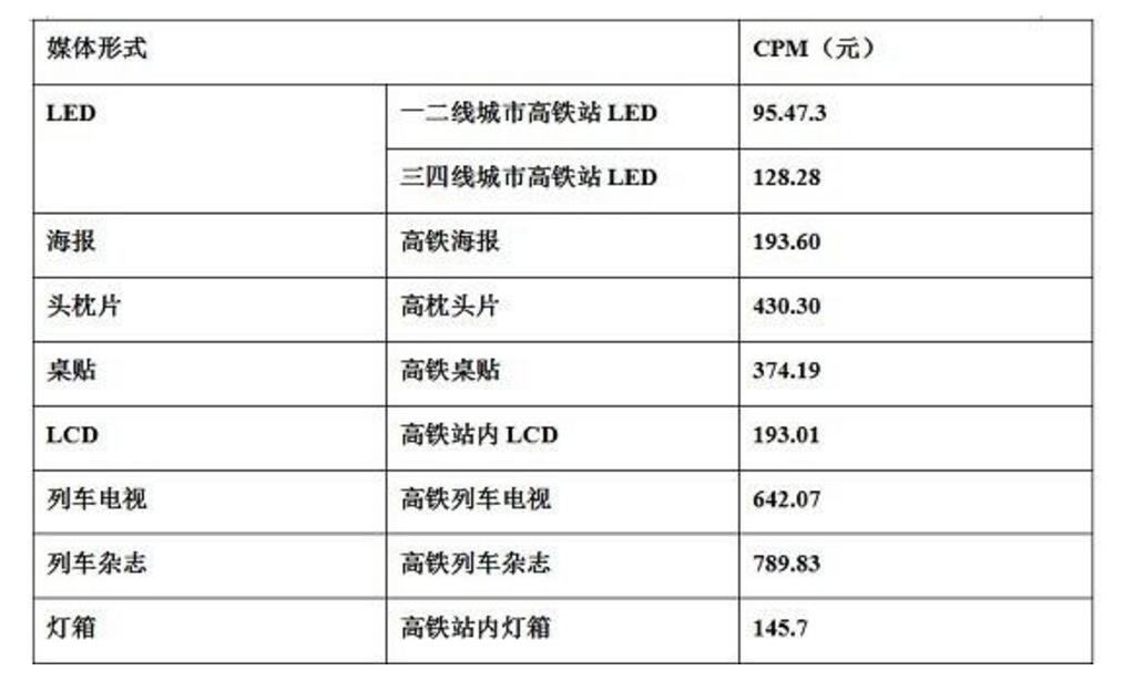 高鐵廣告媒體傳播的節點特性明顯,為社會化價值觀傳播提供了契機。回家、探親、學流、旅游等出行節點為企業在階段行品牌傳播上創造了社會化價值傳播內容。高鐵站內媒介優劣勢分析高鐵LCD媒體:媒體位置較散,畫面小,品質低,關注度較低;高鐵吊旗媒體:媒體位置過高,超出正常的視覺范圍,光線暗,導致到達率較低;列車電視媒體:媒體點位少,覆蓋范圍有限;廣告時段一小時一次,品牌曝光率低;列車雜志媒體:受旅客自主取閱影響,5個座位一份,廣告到達率低;翻閱時存在廣告抵觸心理,會直接翻過,接觸率低;漏放丟失嚴重,監測困難;高鐵LED媒體:與車次信息結合,強制觀看,廣告到達率高;站內唯一權威發布平臺,具備公信力;媒體位置較好,畫面大,視覺震撼強,關注度高。列車平面媒體:媒體資源豐富,可根據車型、線路劃分各級消費人群;位置醒目,可視效果好,沖擊力強;面對面,一對一近距離吸引,到達率高;高鐵燈箱廣告:媒體位置較多,形成點攔截;部分媒體位置醒目,干擾媒體少,到達率高;