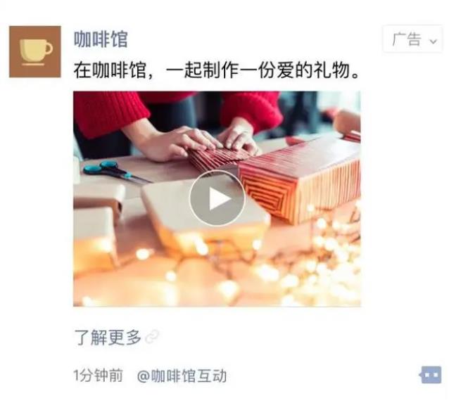 1. 廣告主頭像昵稱:用戶點擊可直接跳轉廣告主公眾號介紹頁;2. 外層圖片、小視頻;3. 外層文案標題(可選);