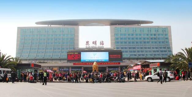 昆明站于1966隨著貴昆鐵路的通車(chē)啟用,2004年12月28日新客站擴(kuò)建工程竣工,2005年1月1日正式投入運(yùn)營(yíng)。
