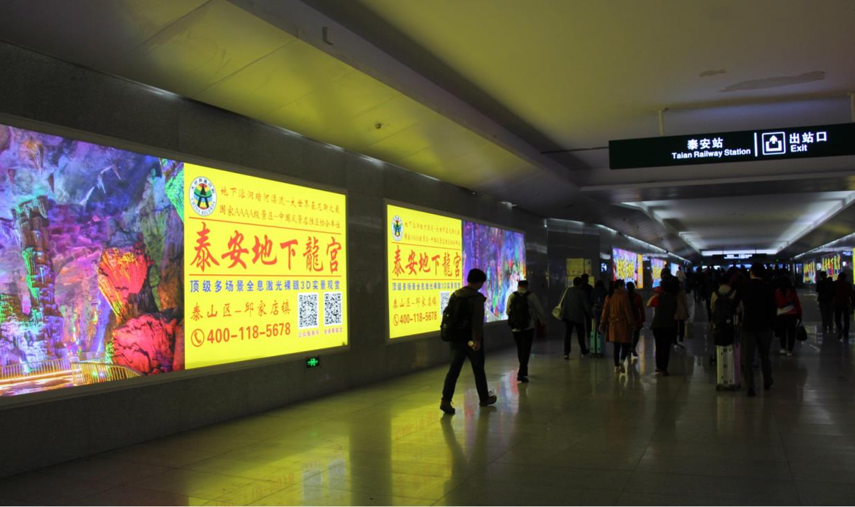 泰安高鐵站到達層出站通道墻面燈箱廣告,萬事成傳媒