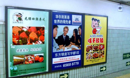 位于地鐵通道中或地鐵出口的燈箱媒體,經(jīng)常一排2個或3個燈箱