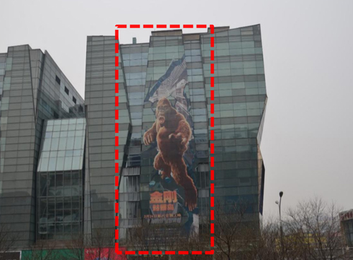 創(chuàng)意方案四:整面(朝東)+東南;廣告總面積: 2800m²+900m²=3700m2(圖片為改造前的實景照片) 發(fā)布費用:(7天:660萬) 制作費有+上下刊費用:110萬
