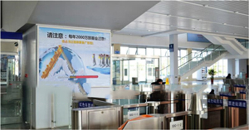 售票窗旁近B進(jìn)出站口 站廳燈箱 1塊 5.51(寬)*1.91(高)=10.52㎡