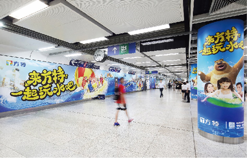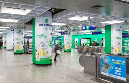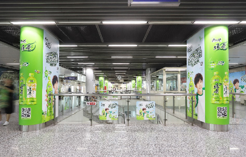 組合形式 :超級墻貼75㎡+13根站廳包柱+8塊6封站廳燈箱+玻璃貼(不少于20塊)