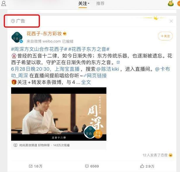 (4)KOL動態廣告投放。找到行業和產品相關的微博大V,在他(她)的賬號中發送屬于你的產品或者品牌廣告,根據廣告主拍攝要求提供,文字版視頻創意腳本,文字版拍攝腳本確認后進入視頻拍攝環節,視頻內容確認后,按照廣告主指定時間發出。KOL投放具有很強的針對性,目標受眾可以十分明確,KOL的固有粉絲群體 ,這樣的投放能夠很明確的找到產品定位的相關受眾。