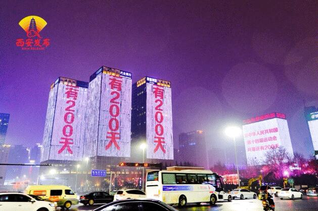 在西安高新區錦業路都市之門東側立面大屏,以及延平門附近的樓宇外立面上,絢麗的“燈光秀”和樓體大屏上滾動的字樣格外醒目。記者在現場看到,一句句振奮人心的宣傳語通過大屏展現在夜色之中,吸引了不少市民駐足觀看。