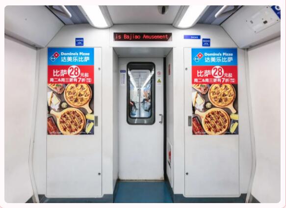 以上關于達美樂投放的北京地鐵內包車廣告的介紹就到這里,如您咨詢北京地鐵廣告,地鐵包車廣告,地鐵品牌墻廣告等等廣告投放合作,請聯絡萬事成傳媒,電話 13466609726。