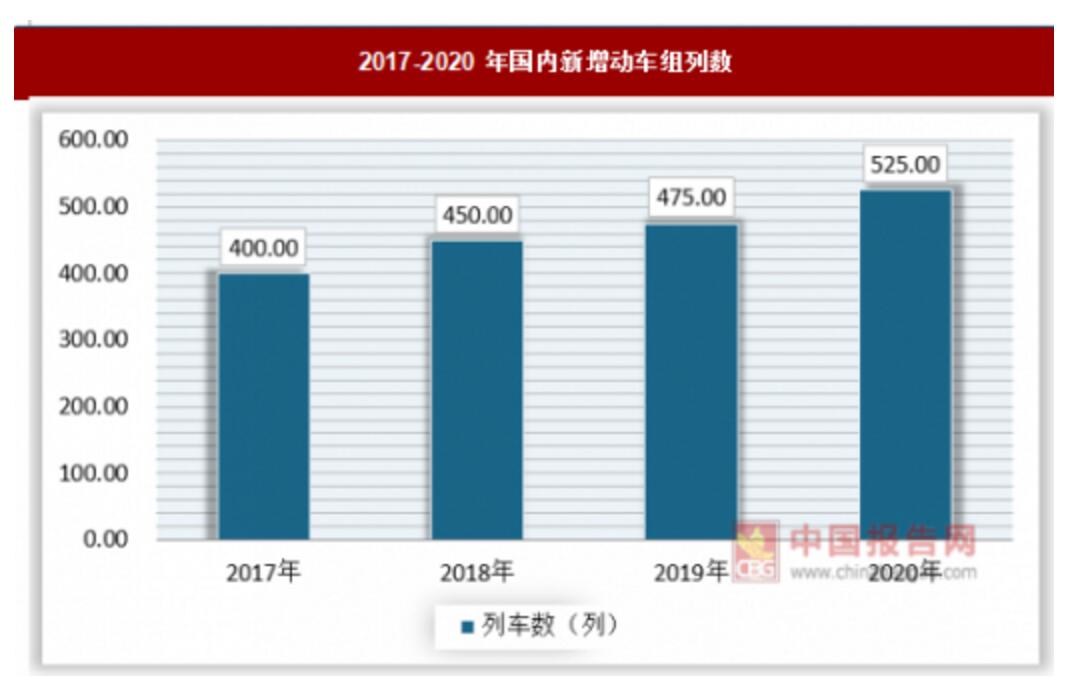 2017-2020年國(guó)內(nèi)新增動(dòng)車組列數(shù)