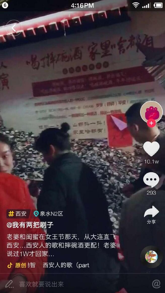 因?yàn)樵诙兑羯弦馔獗鸬倪@段摔碗短視頻,西安的旅游發(fā)展委員會(huì)還專門與抖音達(dá)成合作。數(shù)據(jù)顯示,今年春節(jié)假期以及清明假期中,西安接待的游客量分別同比增長(zhǎng)66.56%,以及38.76%。截至三月,抖音上關(guān)于西安的視頻量超過(guò)61萬(wàn)條,播放總量超過(guò)36億次。