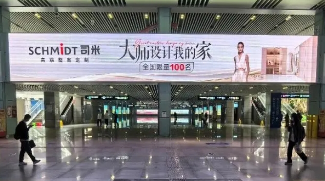 今年51假期,高鐵旅客流量再創歷史新高,SCHMIDT司米品牌傳播借勢而上。基于高鐵廣告傳播高覆蓋面與權威性等特征,在交通樞紐高端媒體上展開戰略式滲透布局,進一步加深全國消費者對SCHMIDT司米“高端整案定制”品牌定位的認知與了解。