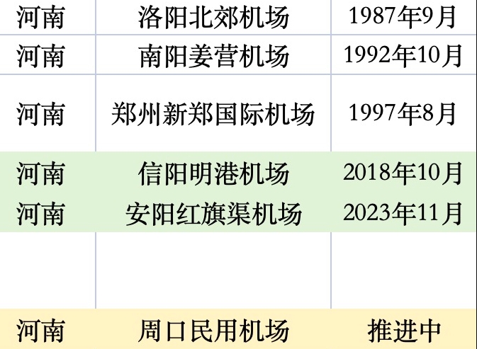 河南目前僅有5座民用機場通航,其中2座在2018年后通航。周口機場項目場址已選定,仍在等待批復(fù)。商丘機場、潢川機場、平頂山機場、三門峽機場等4座機場則在規(guī)劃中,目前尚無明確進(jìn)展。